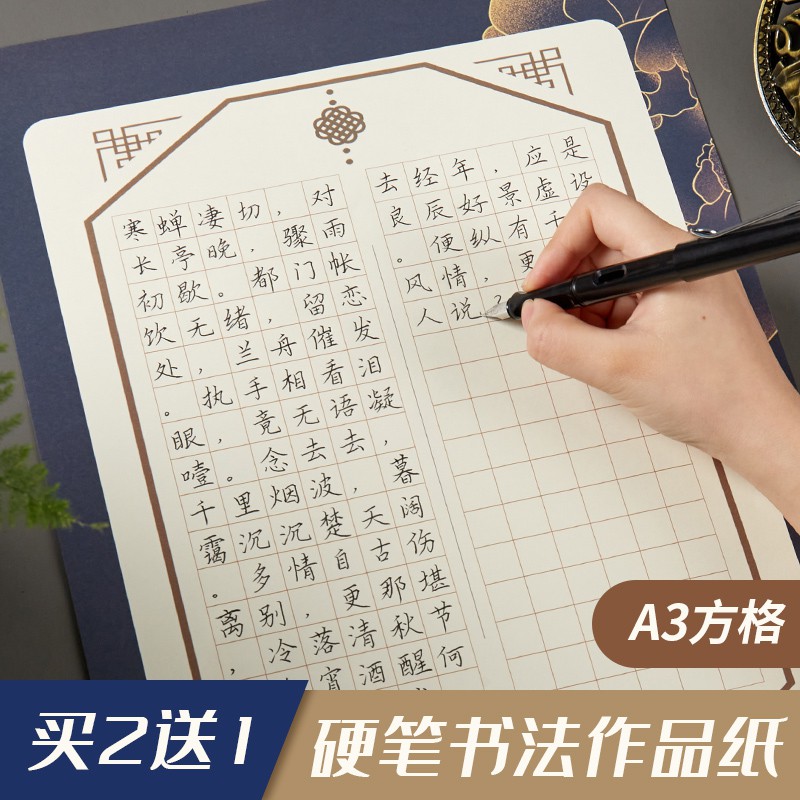 A3硬筆書法作品紙8開小學生鋼筆練字紙中國風練習寫字的紙臨摹創作展覽展示紙8k大號方格書法紙硬筆專用比賽